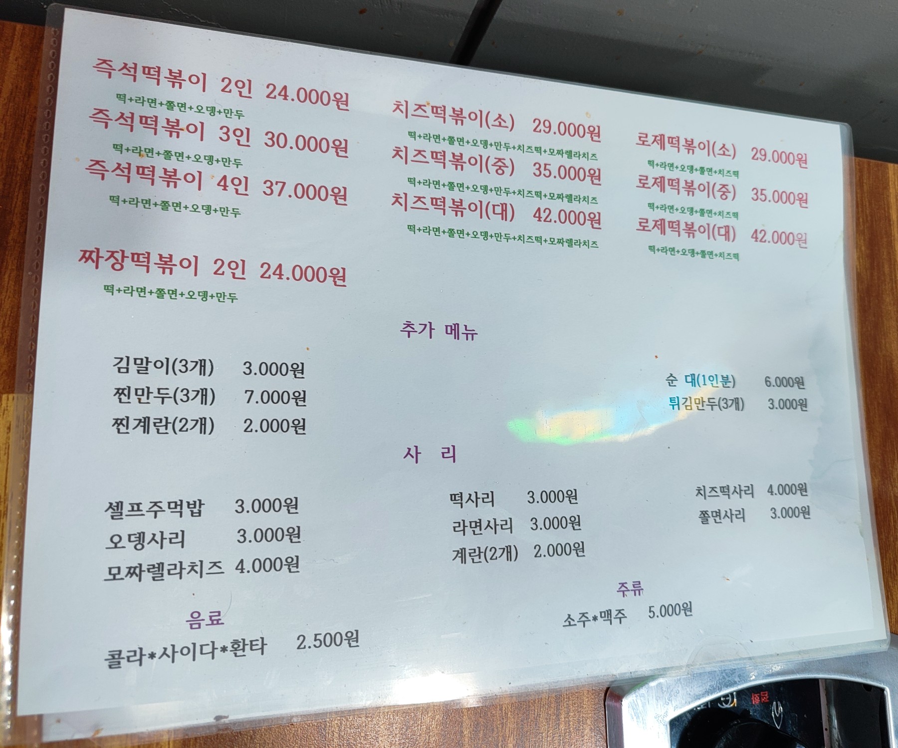- 치즈떡볶이 S 29,000원 / M 35,000원 / L 42,000원