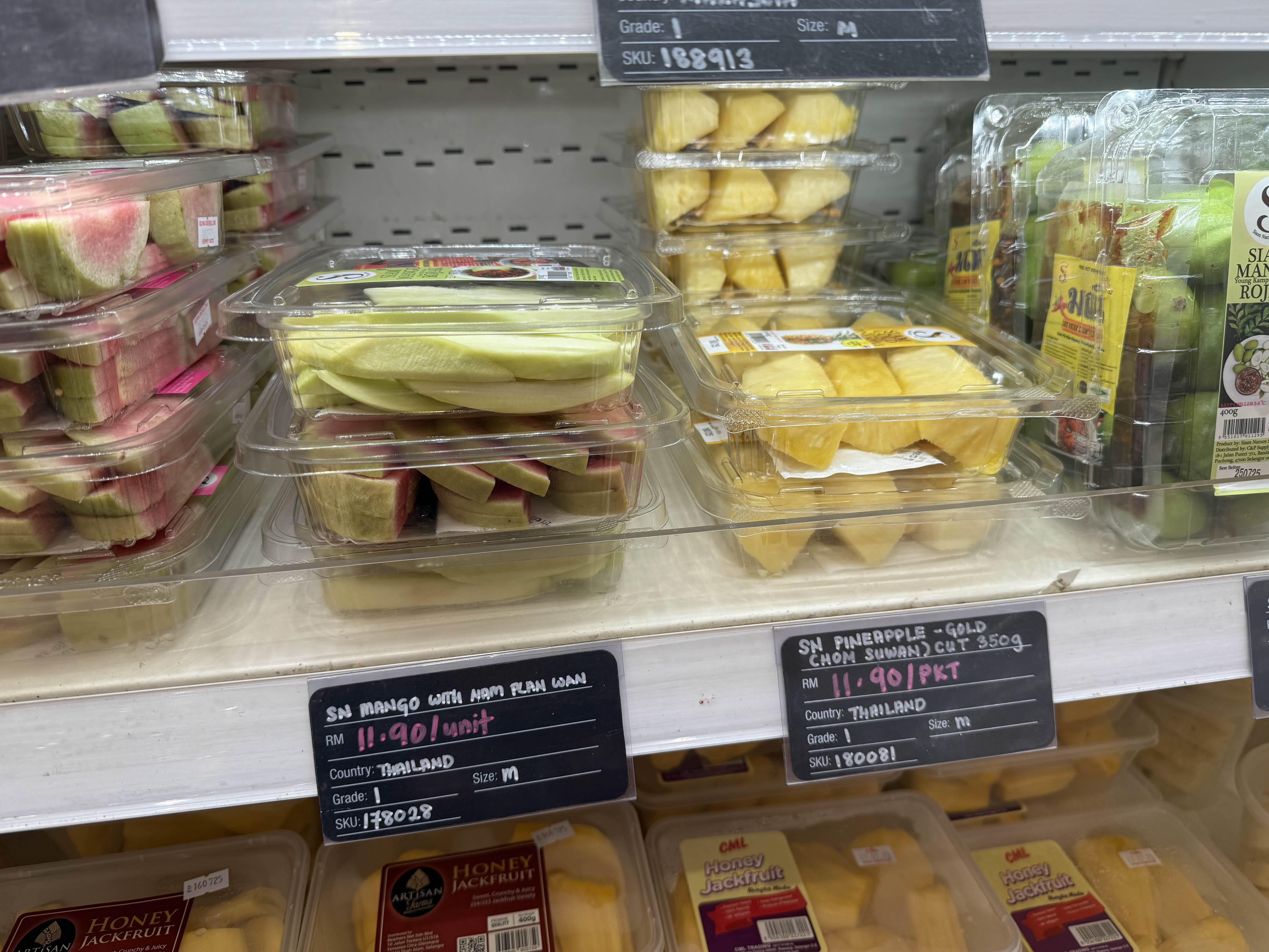 | 컷팅 망고/파인애플 (자야) | 약 RM11.90 | 포장 깔끔하고 양은 보통. 가격은 살짝 높은 편 |