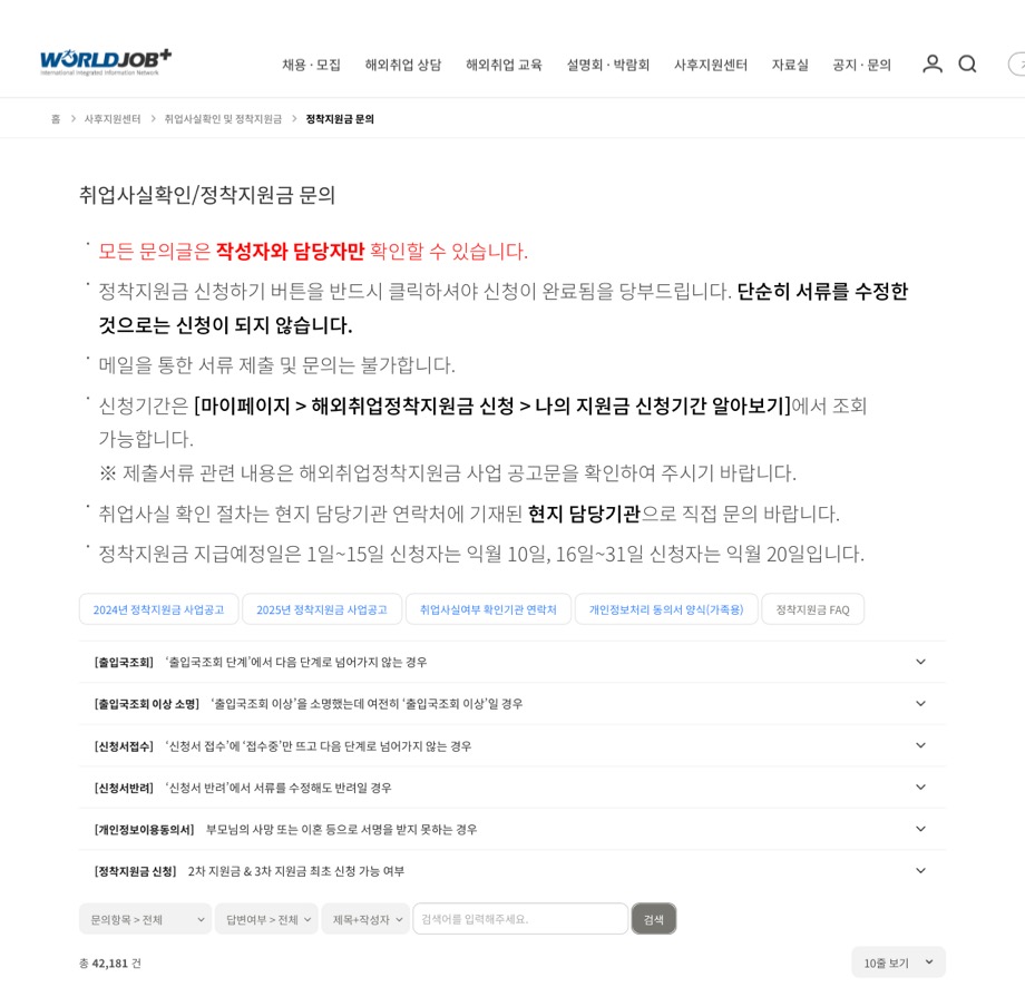 따라서 해외취업 예정자라면 반드시 최신 공고문을